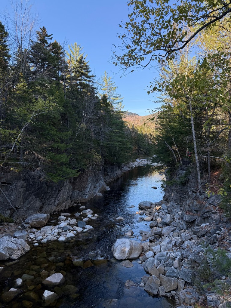 From Stowe, cross into New Hampshire and spend the afternoon on the Kancamagus Highway — 34 miles of mountain scenery through the White Mountains. Even without strong color, it’s a beautiful drive.